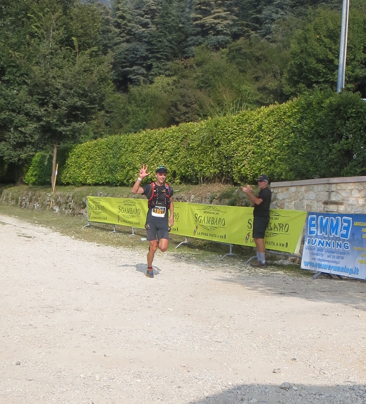 Dalla cima è una gara per due, io e Stefano andiamo insieme per diversi km ad una velocità abbastanza tranquilla se paragonata a quella degli scorsi anni, dove stavo sempre inseguendo “la lepre” Zanatta. Io mi adagio sul ritmo, anche Stefano sembra non voler aumentare quindi non resta che preparare l’attacco. Già al Finestron (km 27) decido di tenermi per lo strappo di Campo Solagna e proprio qui mi gioco una carta. Stefano non riesce a tenere il ritmo e mi ritrovo in testa, ormai mancano solo le trincee di Col Campeggia e poi l’ultima discesa. Cerco di gestirmi e alla fine finisco in 4h22′. Non è record, ma dopotutto il ritmo per gran parte della gara non è stato esasperato. Va bene così. Qualche minuto dopo arriva Stefano, che ha ceduto nel finale e al terzo posto arriva Nazzareno Salvati, contentissimo (a ragione) per il suo podio!