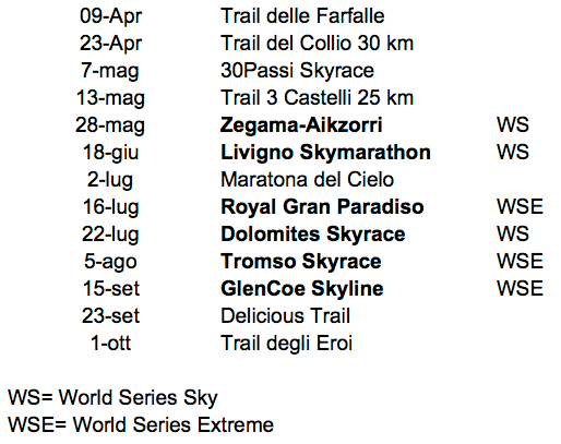 L’obiettivo principale, come lo scorso anno, resta la Skyrunning Extreme World Series. Ma in preparazione delle tre gare della WSE vorrei partecipare ad alcune prove di World Series “Sky” e altre gare minori, che però ho sempre amato.