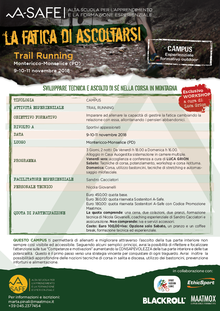 Possibilità sia di partecipare ad entrambi i giorni ad un prezzo di 180 euro, oppure alla singola giornata al prezzo di 100 euro. E il venerdì sera una serata da non perdere con il Prof. Luca Grion.