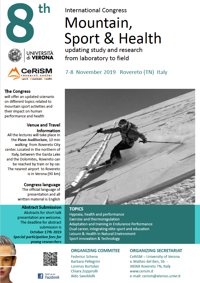 International Congress Mountain, Sport & Health Pubblicato danicgiovanelliottobre 29, 2019Pubblicato in: Eventi, News Giovedì 7 e venerdì 8 novembre a Rovereto, presso il CeRiSM Programma e dettagli sul sito del CeRiSM Condividi: Fai clic per condividere su X (Si apre in una nuova finestra) X Fai clic per condividere su Facebook (Si apre in una nuova finestra) Facebook Mi piace Caricamento... Correlati