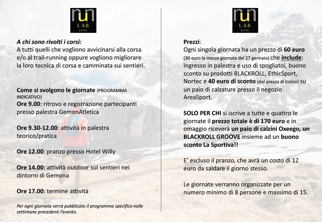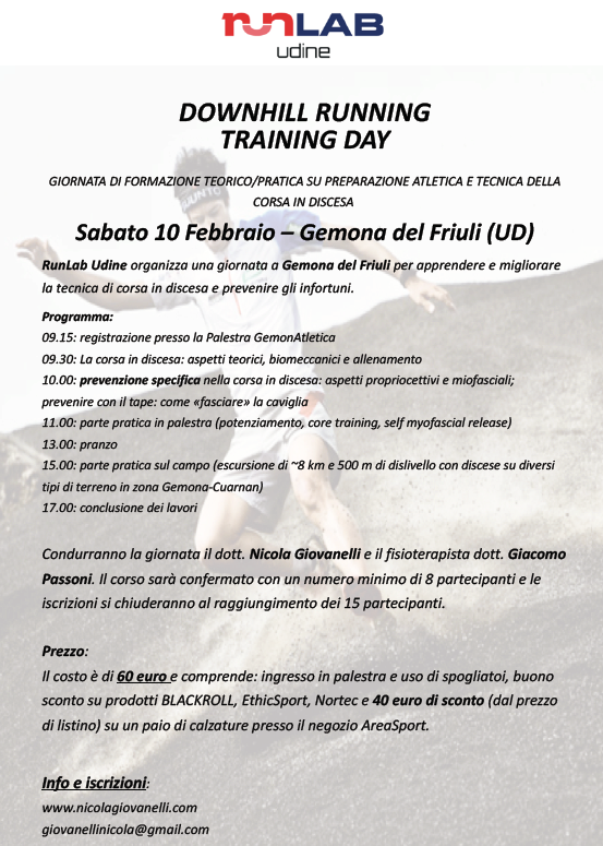 Inoltre il 22 gennaio ci sarà la serata dell’amico Giacomo Passoni (RunLab Udine), da non perdere!